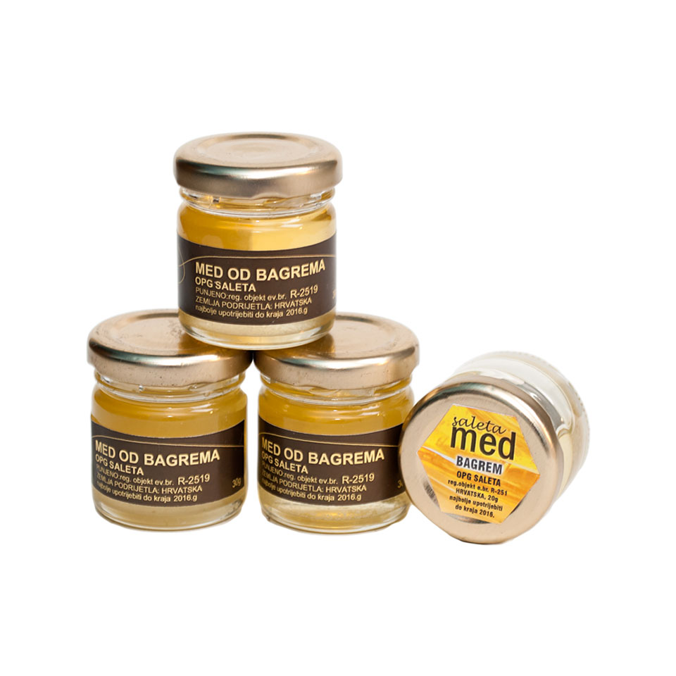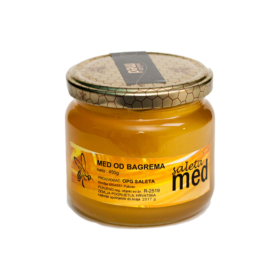Bagremov med izrazito je svijetle žute boje, blaga ugodna mirisa i okusa, lagan i ukusan. Zbog svojih osobina ubraja se u najcjenjenije vrste meda. Pomaže kod nesanice, umiruje previše nadraženi živčani sustav i otklanja posljedice nagomilanog stresa.